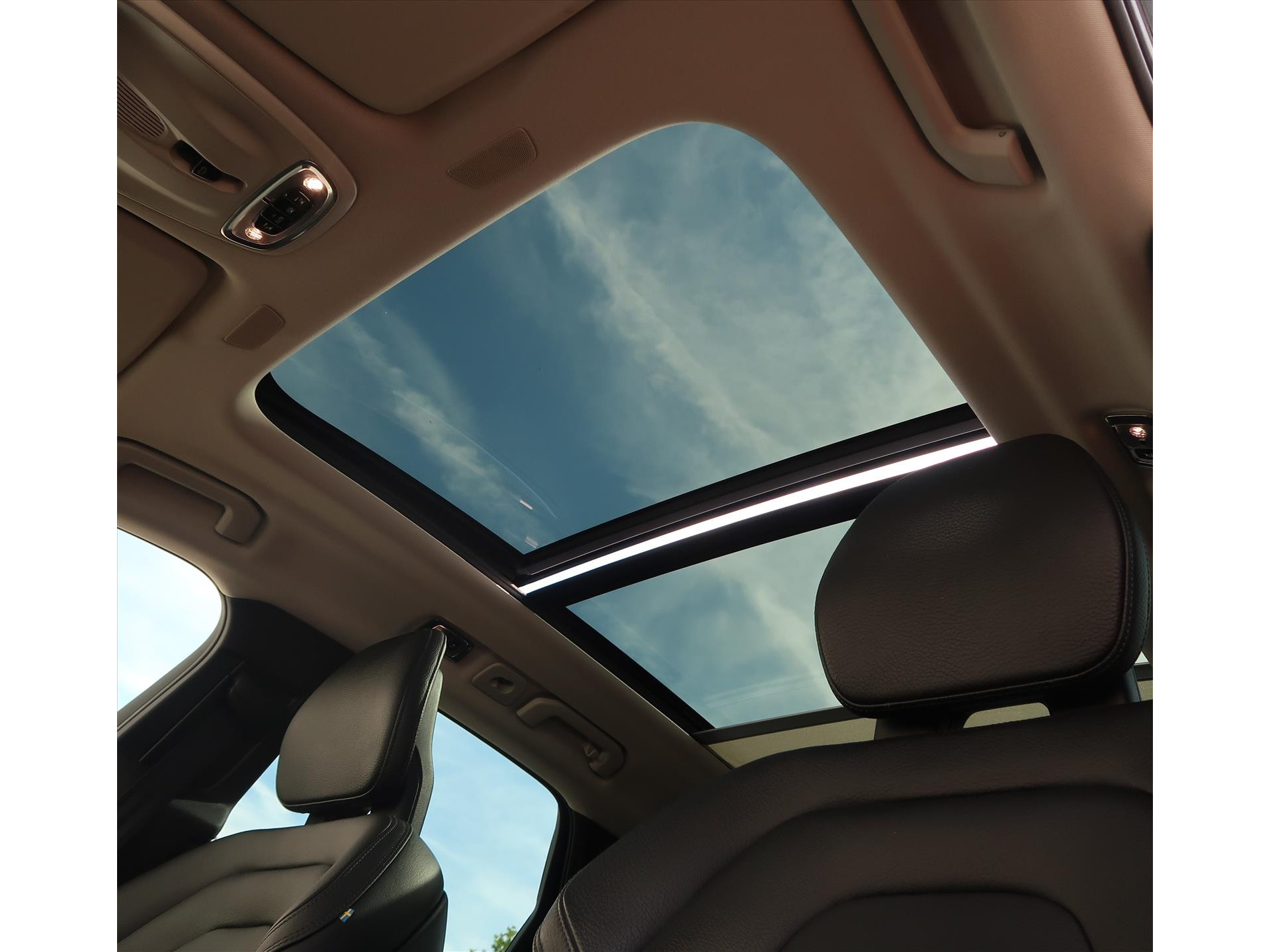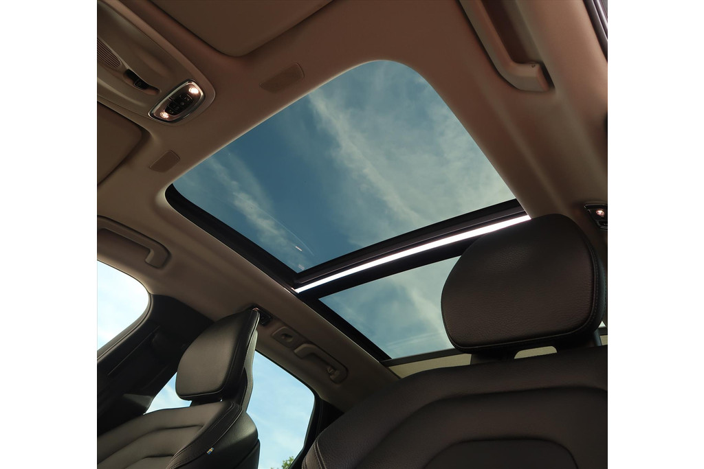 - Elektrisch bedienbaar tweedelig panoramisch glazen schuif-/kanteldak met elektrisch bedienbaar zonnescherm